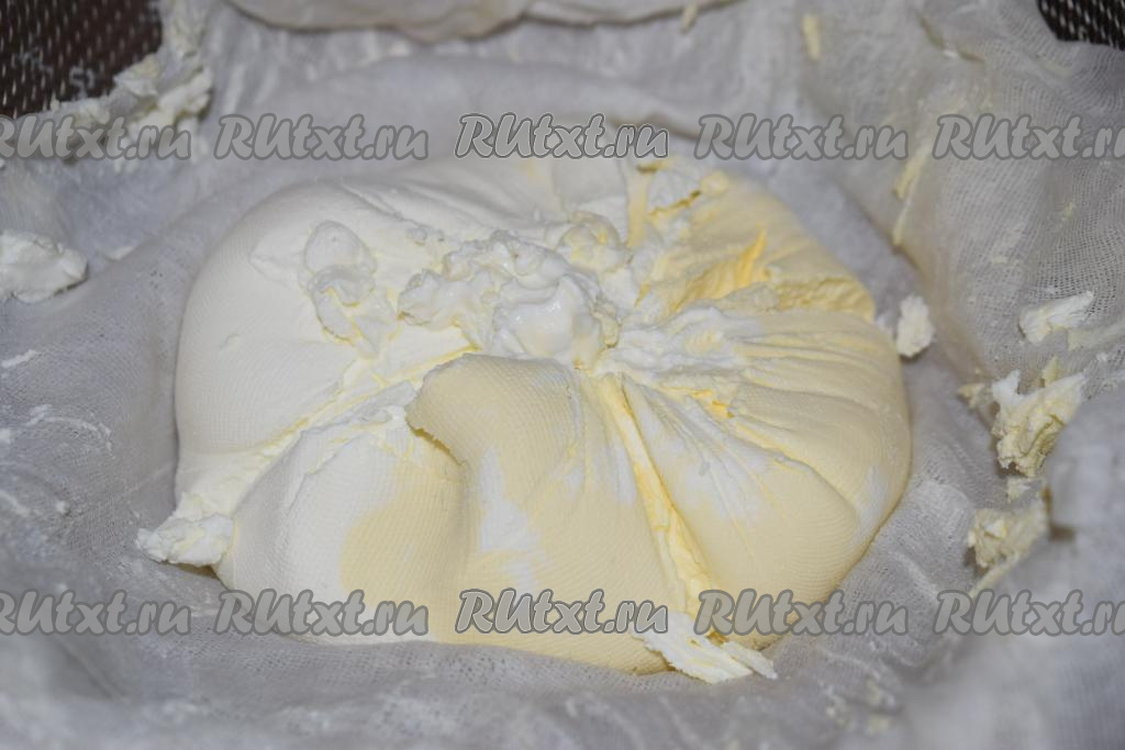 Сметану кладём в миску. Сметана получилась плотной, вся лишняя влага вышла.
