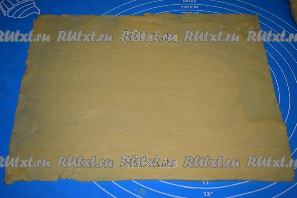 Каждую часть теста раскатываем в пласт шириной 25 см и длиной 30 см.