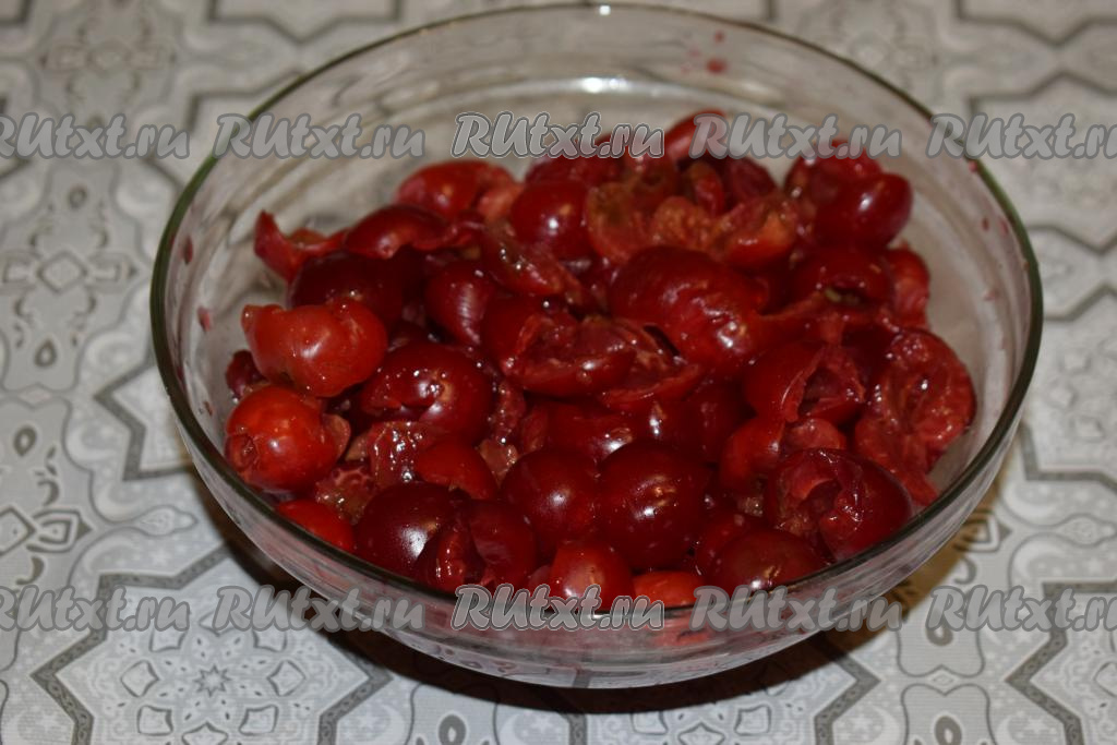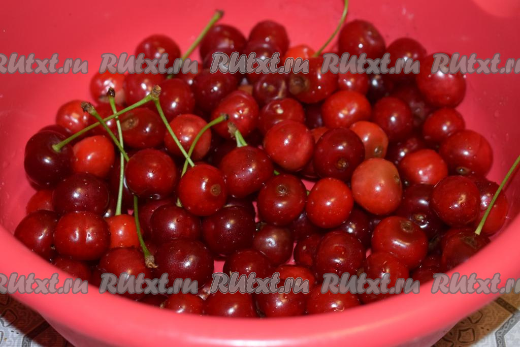 В это время приготовим вишнёвую начинку. Для этого промоем вишню и обсушим её.