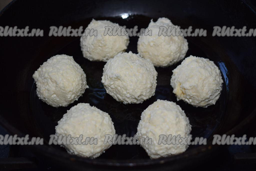 Разогреваем сковороду, наливаем растительное масло и выкладываем наши творожные шарики.
