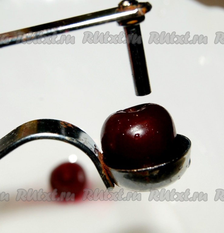 Вытащить косточки из каждой ягоды, это можно сделать, например, с помощью зубочистки. А я в последнее время для удаления косточек из вишни использую вот такое приспособление, как на фото.