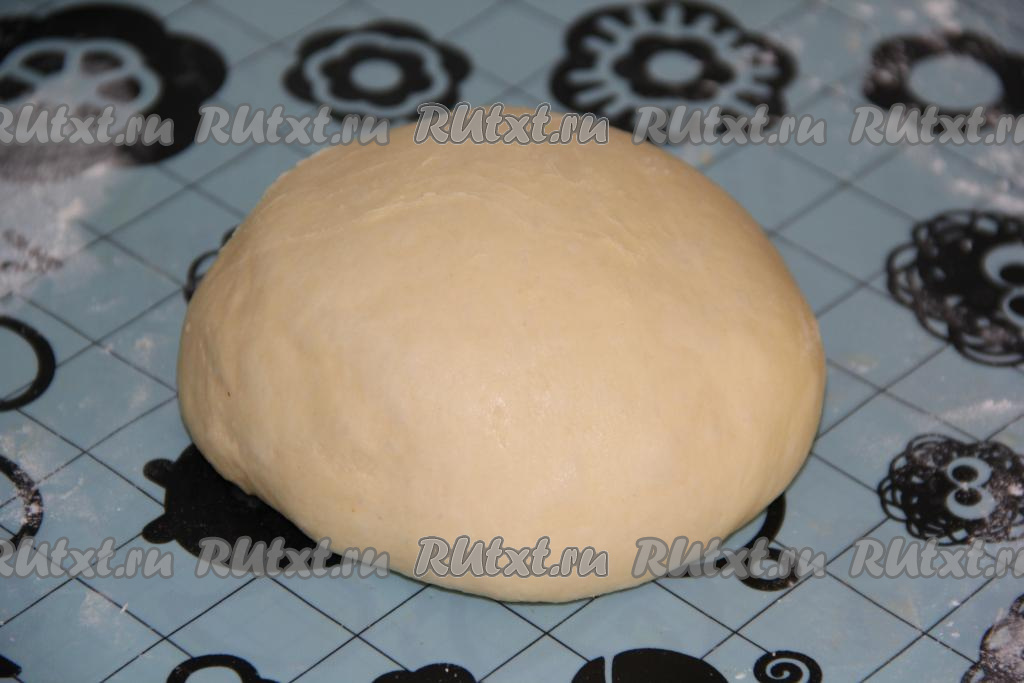 Для замешивания теста соединить муку и дрожжи, перемешать. Затем в глубокой миске соединить слегка подогретый кефир, яйцо, растопленное не горячее сливочное масло, сахар и соль, перемешать, всыпать смесь муки и дрожжей, замесить нежное, мягкое тесто и оставить его для подхода на 1 час под полотенцем. Тесто за это время поднимется, увеличившись раза в 2-3 в объёме. Затем выложить дрожжевое тесто на силиконовый коврик и обмять.