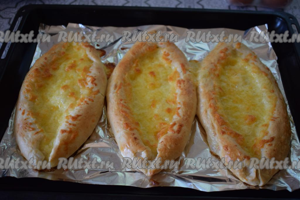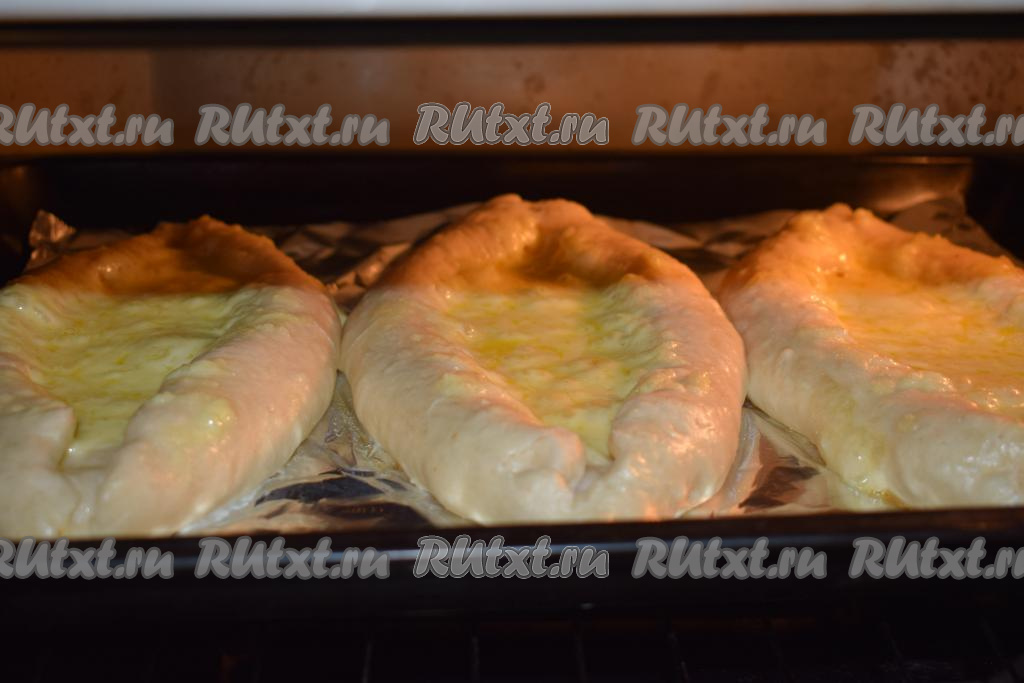 Достаём слегка подрумянившиеся хачапури из духовки.