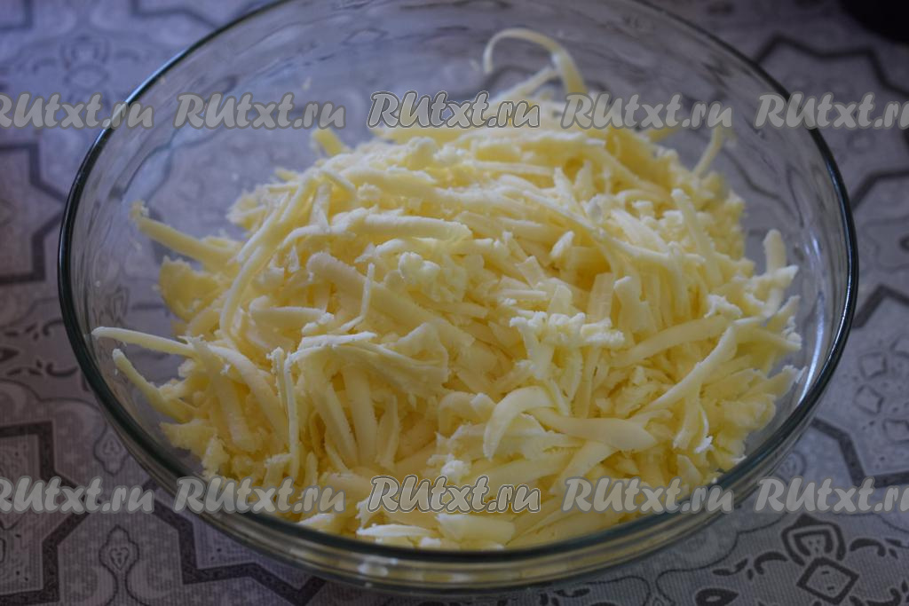 Пока подходит тесто, приготовим начинку, для этого сыр сулугуни натрём на крупной тёрке и добавим к сыру холодную кипячёную воду. Перемешаем сыр с водой, если надо, подсолим сыр по вкусу, наша начинка для аджарских хачапури готова.