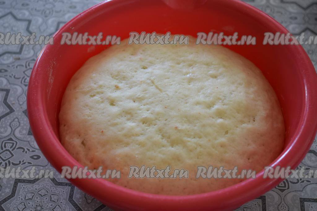 По прошествии 1 часа тесто хорошо подошло и увеличилось в размерах более чем в 2 раза.