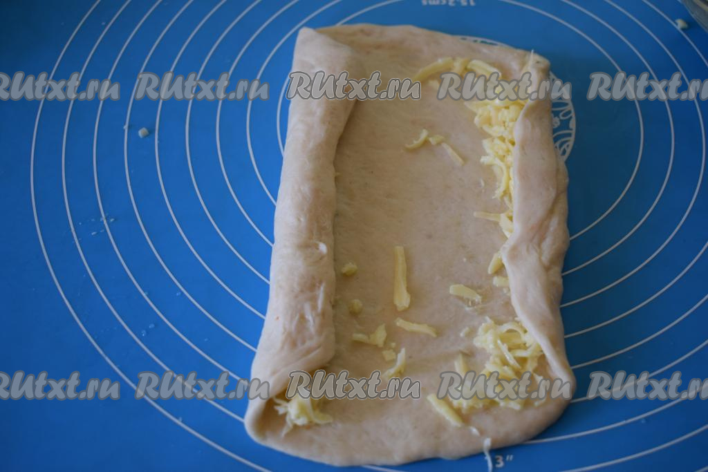 Сворачиваем тесто с двух сторон, накрывая сыр по краям нашего хачапури.