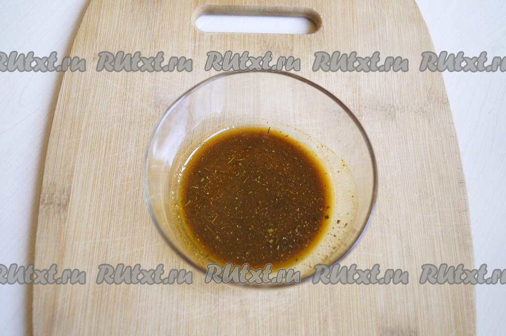 Для приготовления маринада смешать 1 столовую ложку растительного масла и 1 чайную ложку специй для курицы.