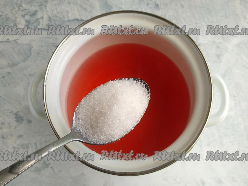 В кастрюлю с настоем всыпать сахар.