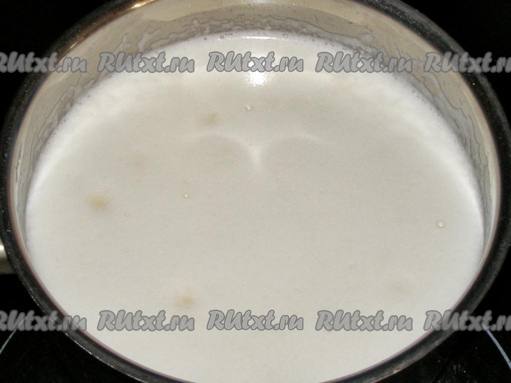 Нагреваем на среднем огне, помешивая, почти до кипения.