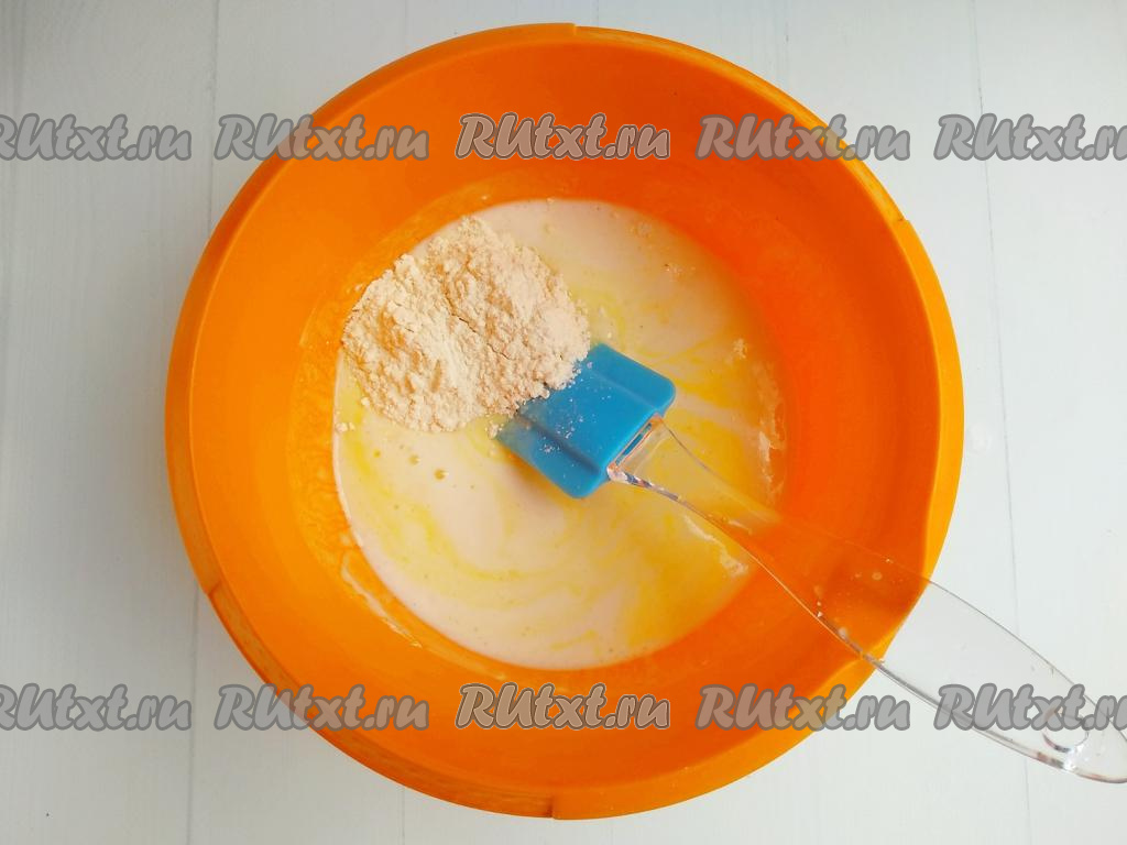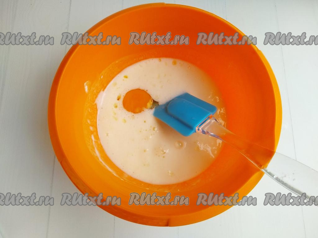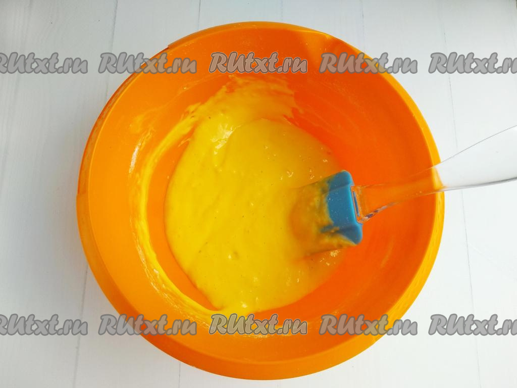 Всыпать просеянную муку и замесить тесто, напоминающее сметану средней густоты (как на оладьи).