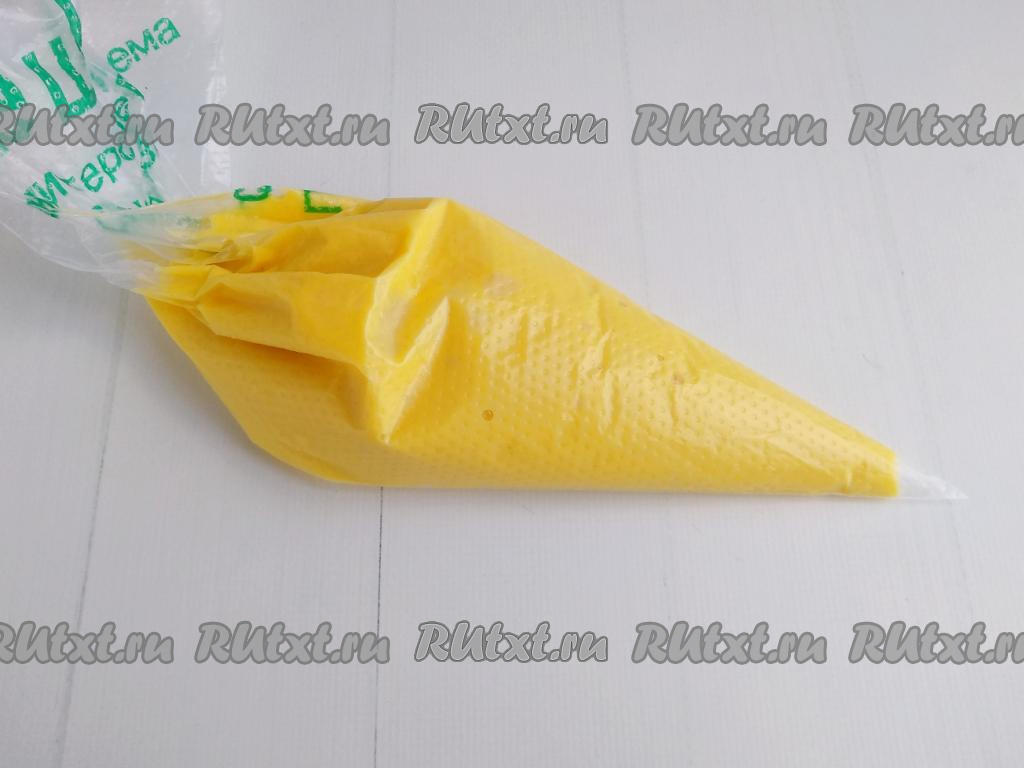 Тесто переложить в кондитерский одноразовый мешок, отрезать кончик, приблизительно, на расстоянии 1 см от края.