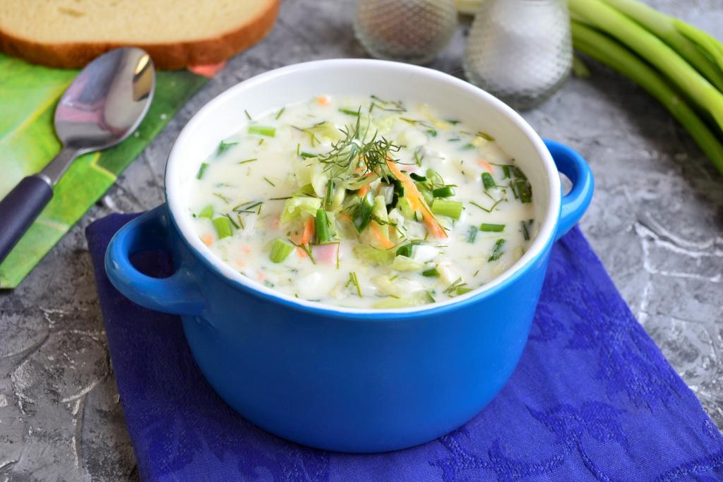 Предлагаю вам интересный вариант популярного летнего охлаждающего супа, который я попробовала в гостях, - окрошки с капустой. Уверена, что мало кто пробовал такую необычную окрошку, а зря! Окрошка получается очень вкусной, лёгкой и полезной, в её составе нет картошки, зато присутствует капуста и морковка. Интересно?!! Тогда быстрее читаем рецепт и готовим, вам точно понравится! Капусту лучше использовать белокочанную молодую или пекинскую.