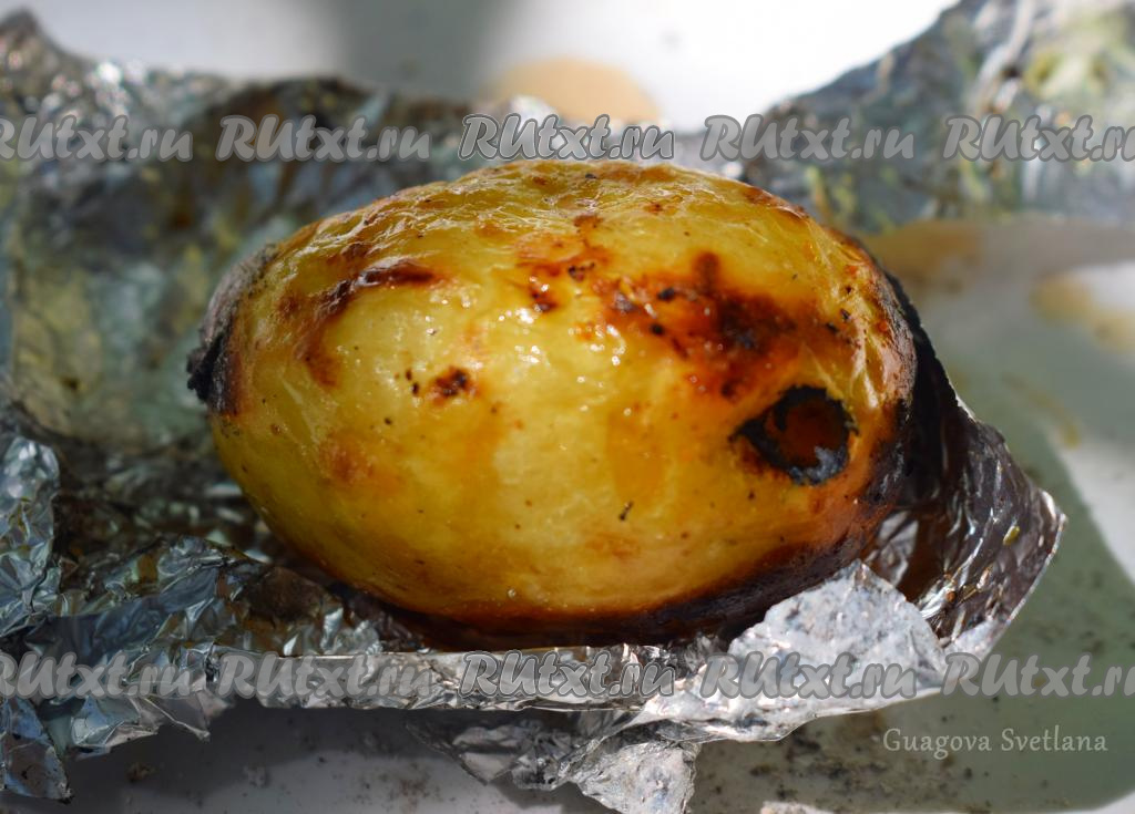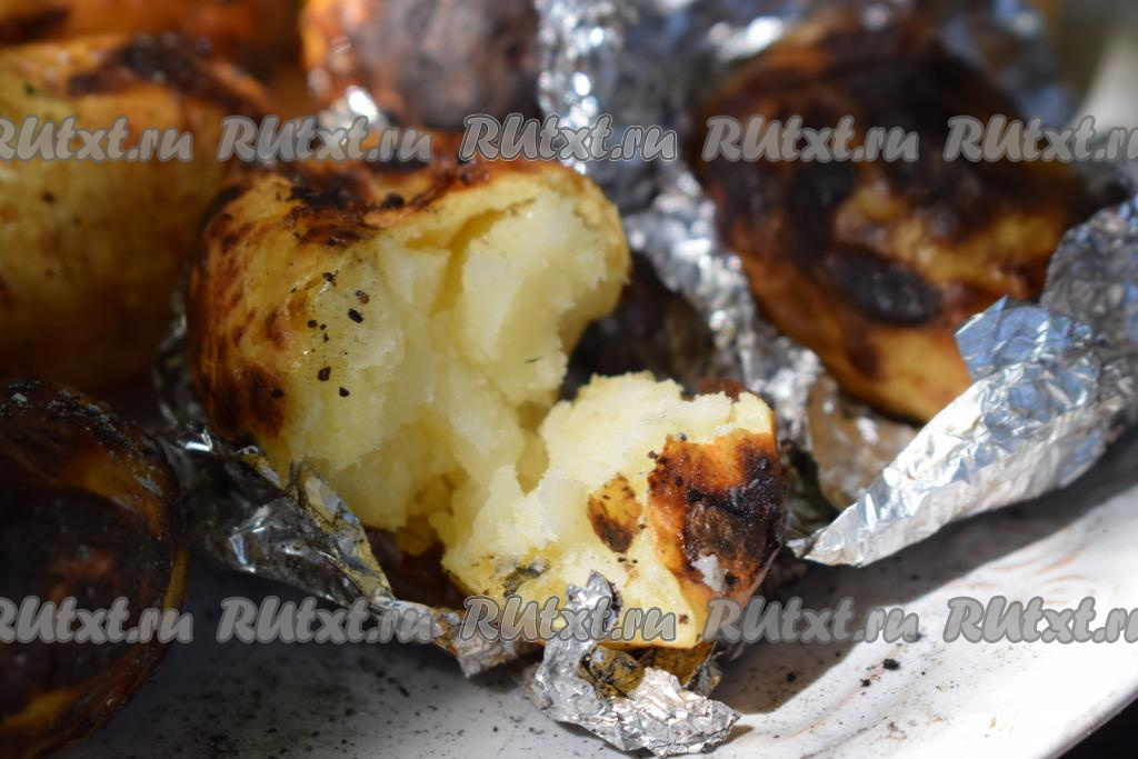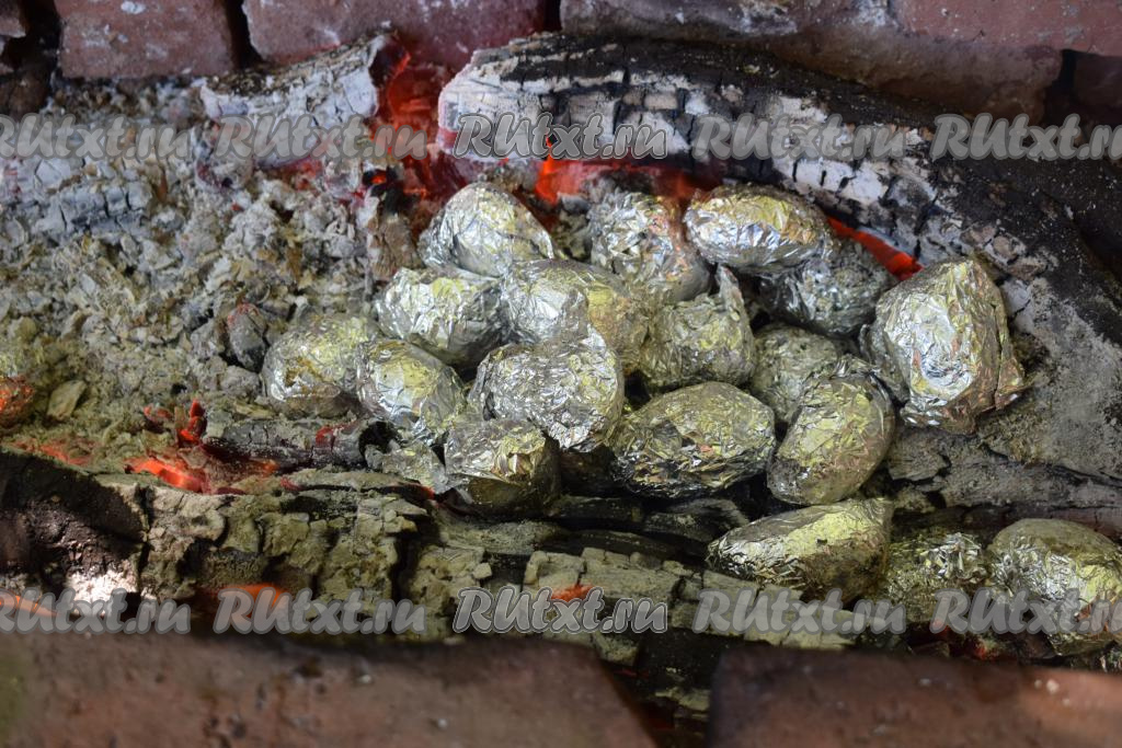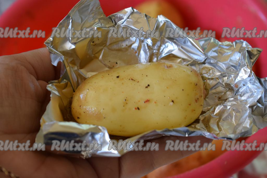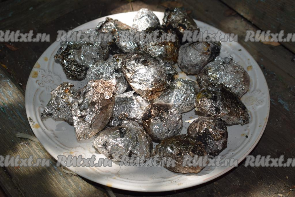 Готовность можно проверить так: развернуть фольгу, если картофель уже подпечённый снаружи и мягкий внутри, значит можно доставать его из костра.