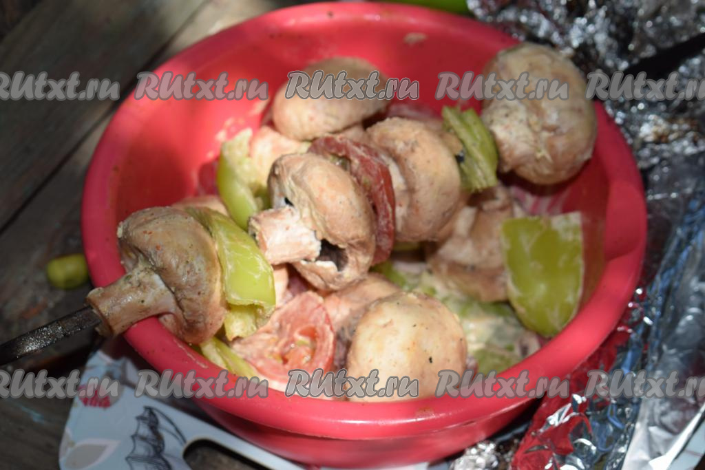 Шашлык из овощей и шампиньонов, приготовленный на шампурах, - это великолепное блюдо, которое может быть как гарниром, так и основным блюдом. Такой шашлык получается сочным, вкусным и очень ароматным. Подойдёт он и к мясу, и к птице, и к картофелю. Такой шашлык станет украшением любого пикника и застолья на природе, ведь от сочных и ароматных грибов и овощей, запечённых на костре, никто не откажется!