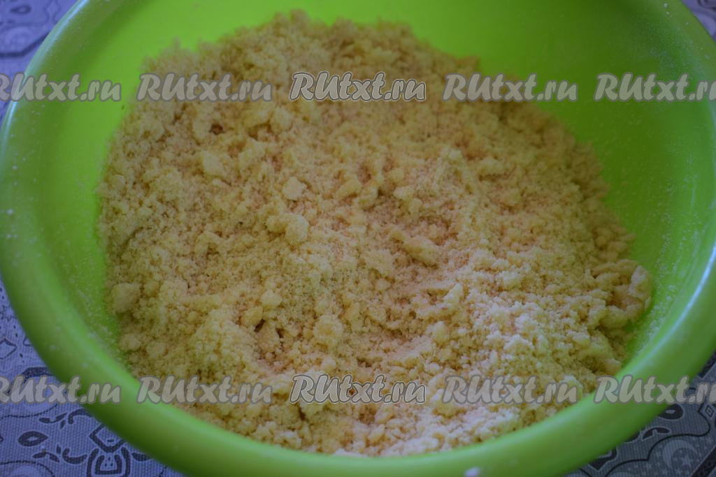 Затем руками растираем получившуюся массу в лёгкую, воздушную крошку.
