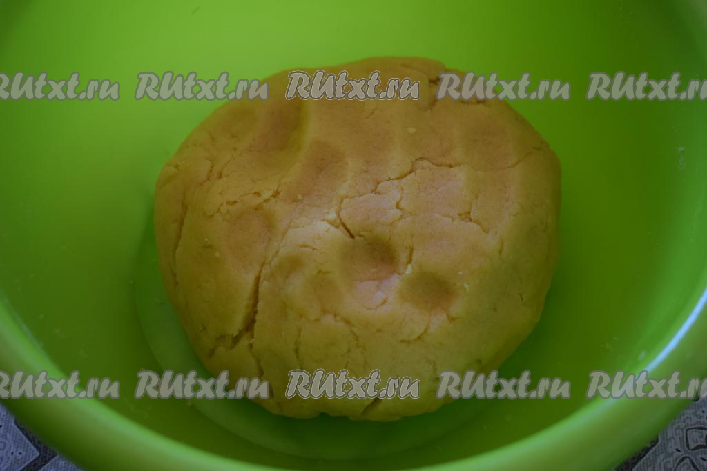 Песочное тесто получается плотным, не липнущим к рукам, по консистенции напоминает пластилин.