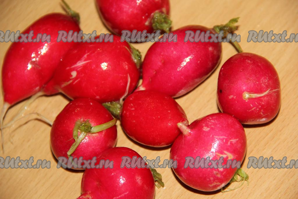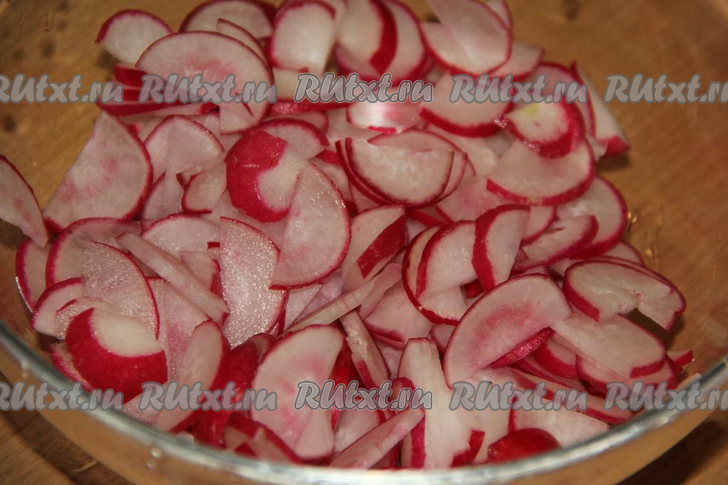Нарезать редиску на тонкие полукружочки (или ломтики).