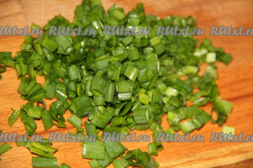 Вымыть зелёный лук, а затем нарезать его мелко.