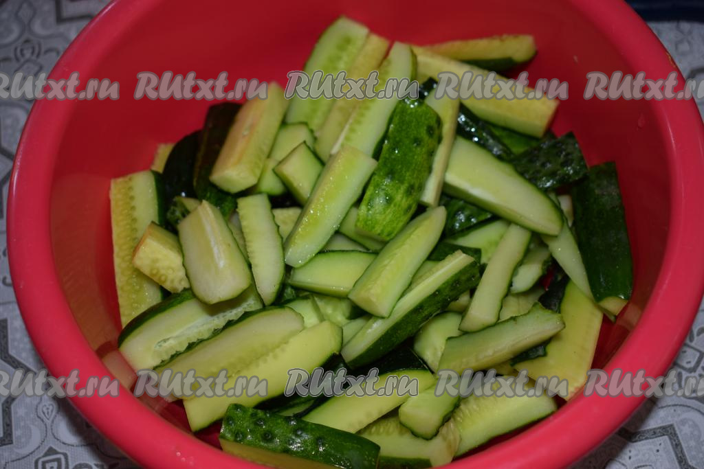 Вот такие кусочки должны получиться. Складываем огурцы в глубокую миску.