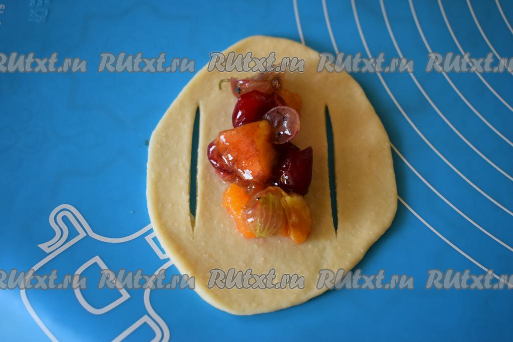 На середину теста выкладываем 1 чайную ложку с горкой начинки.