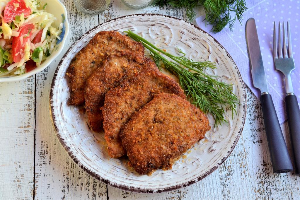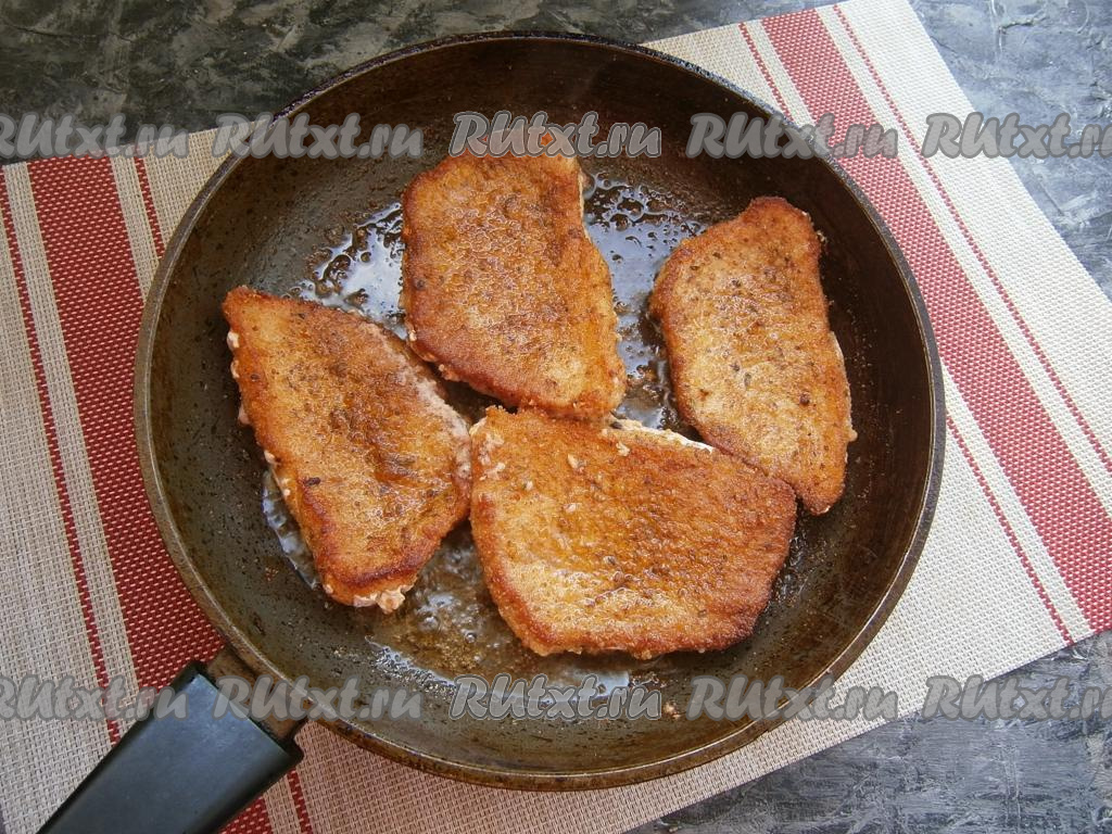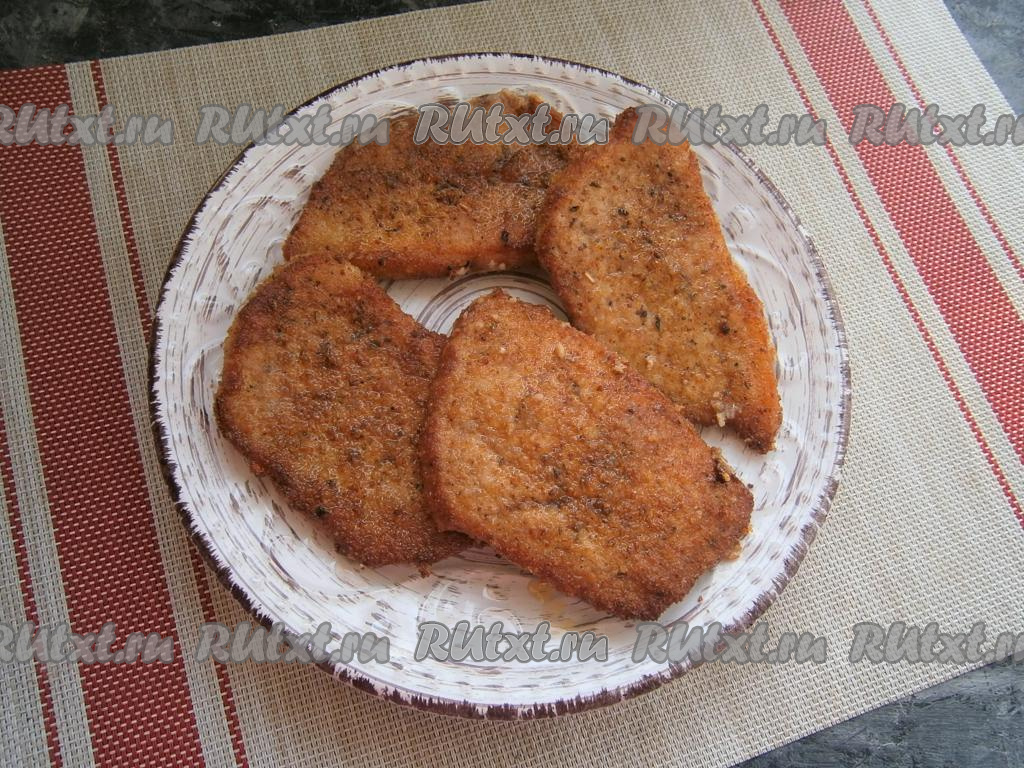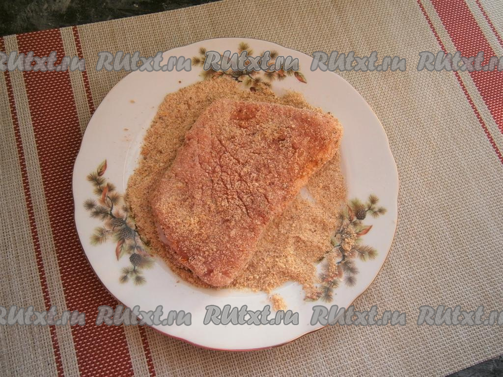 Тщательно запанировать отбивные со всех сторон в панировочных сухарях.