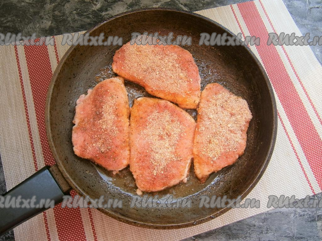 Сковороду разогреть с растительным маслом, выложить отбивные.