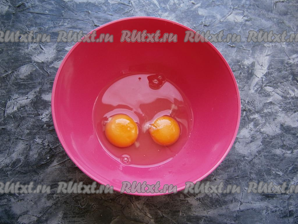Яйца разбить в миску, всыпать щепотку соли.