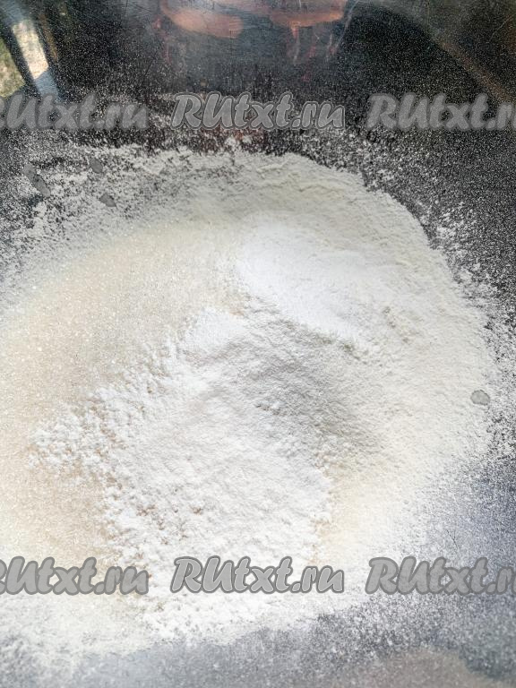 Чистим морковь, затем натираем на мелкой тёрке и откладываем в сторону. В миске смешиваем сахар с мукой, разрыхлителем теста и солью.