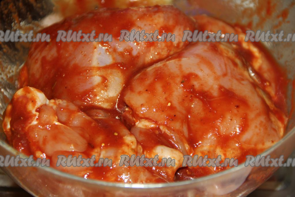 Хорошо обмазать курицу маринадом и оставить на пару часов.
