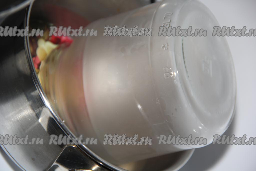 Баночки предварительно вымыть и простерилизовать любым удобным для вас способом (я простерилизовала на пару). Крышки прокипятить в воде в течение 3 минут.