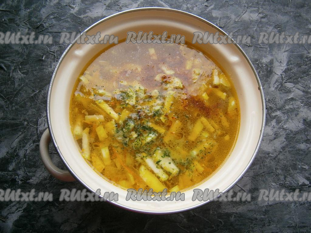 Разлить суп, приготовленный с кабачками и фрикадельками, по тарелкам, посыпать зеленью и подать к столу. Это аппетитное блюдо и насытит, и порадует отменным вкусом всю семью!
