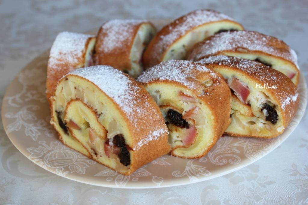 Предлагаю испечь ароматный, вкусный бисквитный яблочный рулет. В этом простом, неоднократно проверенном рецепте тесто выпекается сразу с начинкой, что очень удобно. Сам бисквит воздушный и очень нежный. В качестве начинки я использовала сладкие яблоки и чернослив, хотя можно обойтись и без чернослива. Приготовьте такой бисквитный рулет и у вас на столе будет отличная выпечка к чаю!