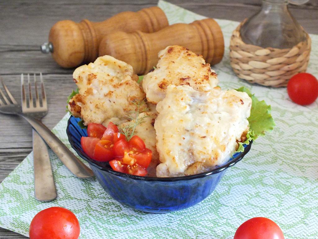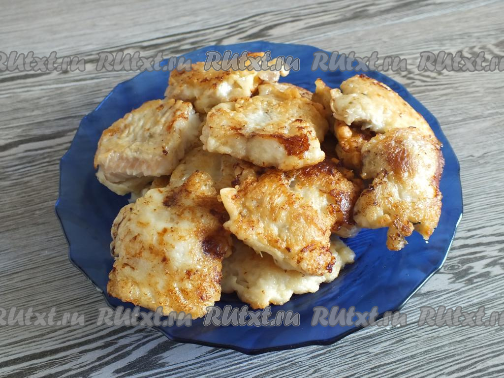 Готовое филе минтая в кляре переложите со сковороды на тарелку.