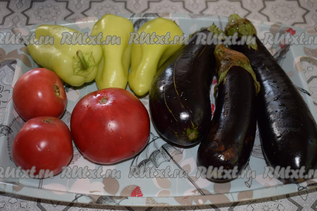 Вымоем и обсушим овощи. У болгарских перцев и баклажанов удалим плодоножки, затем перец очистим от семян.