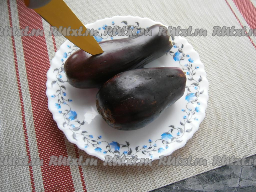 Баклажаны вымыть, обрезать хвостики, а затем наколоть их в нескольких местах ножом.