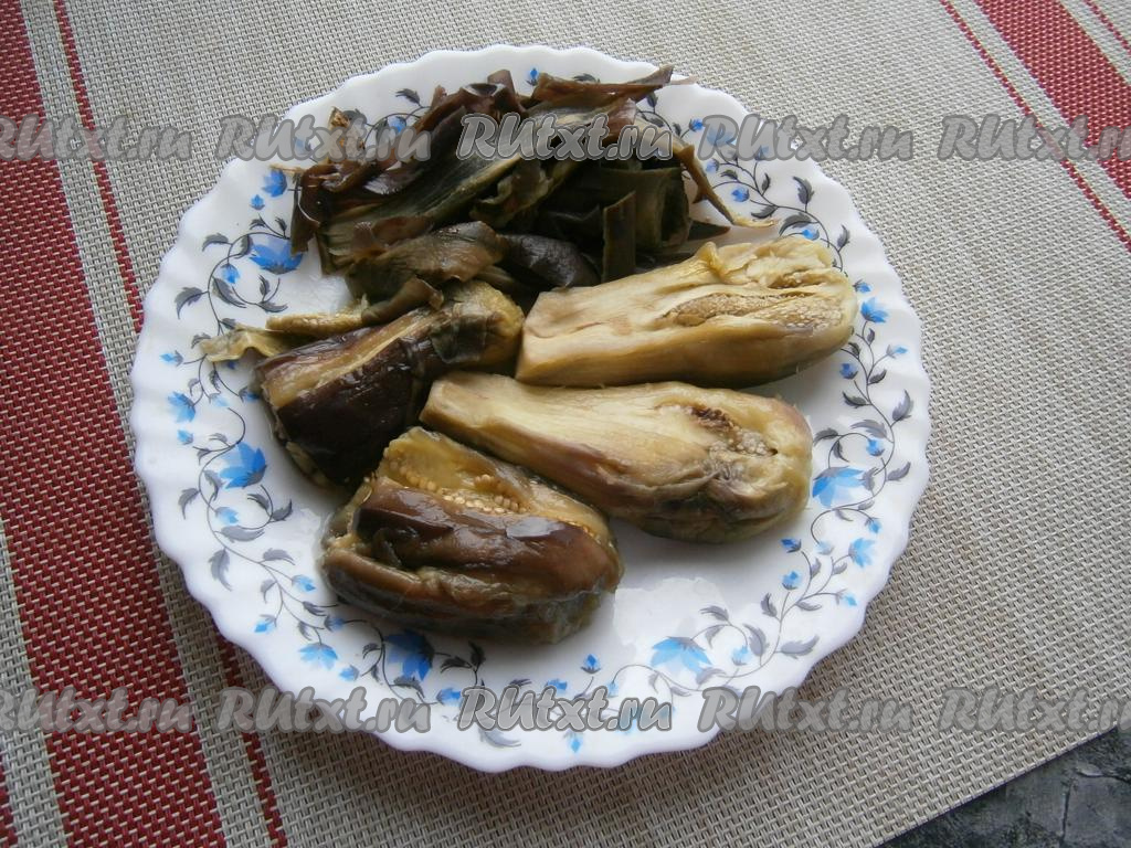 Очистить баклажаны от кожицы.