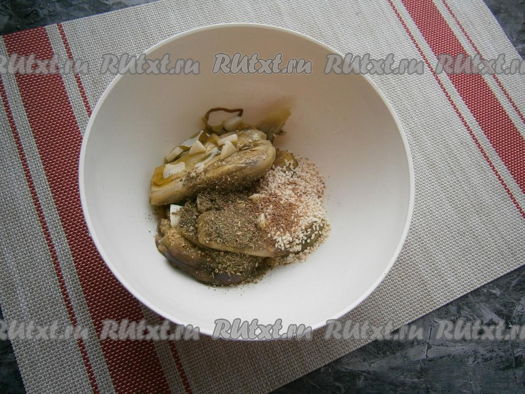 Далее баклажаны можно запечь или в течение минут 30-35 в духовке, разогретой до 180 градусов, или в течение минут 8-10 в микроволновке при мощности 750 Ватт. Баклажаны немного остудить.