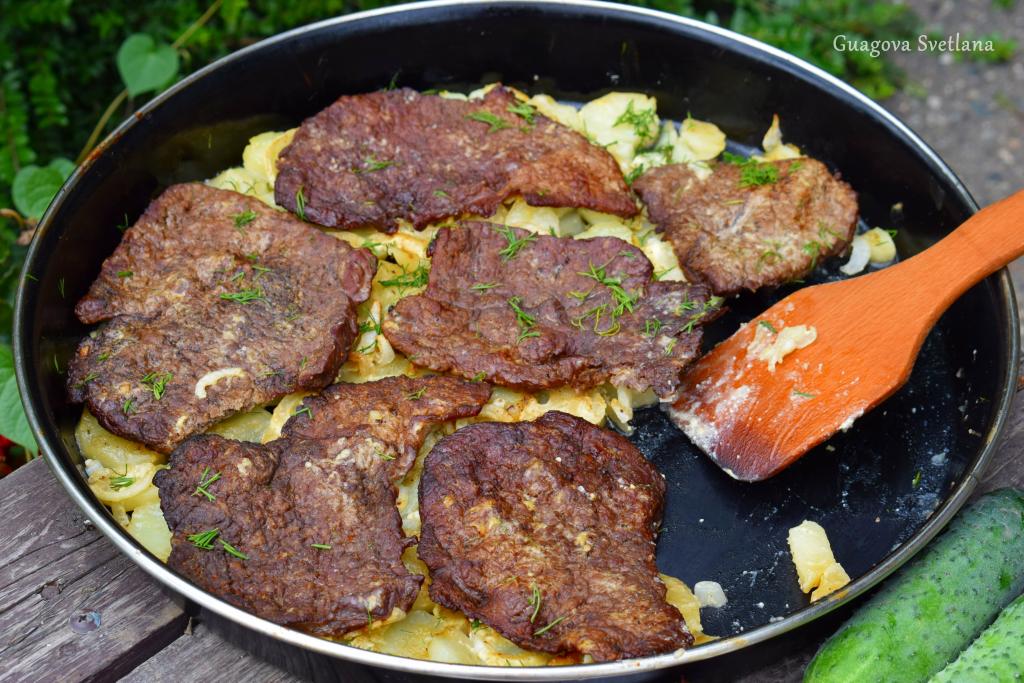 Подаём мягкие, аппетитные отбивные из говядины с картошкой к обеду или ужину, дополнив блюдо салатом из свежих овощей, соленьями или соусами. Получается и вкусно, и сытно!