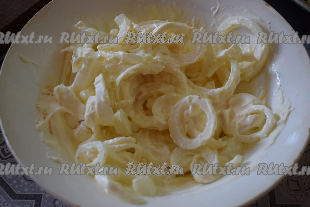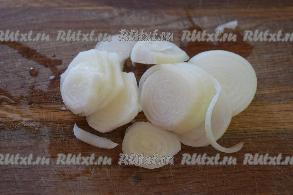 Лук очищаем и нарезаем на кольца (или полукольца).