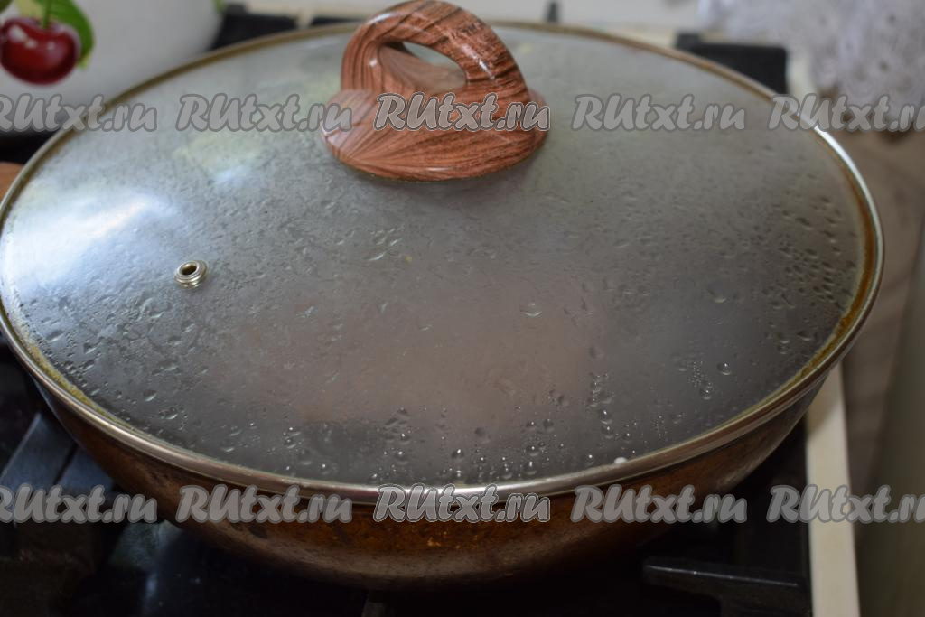 Чтобы во время жарки не брызгало масло, накрываем сковороду крышкой.