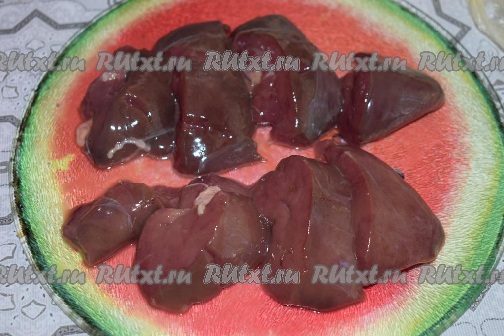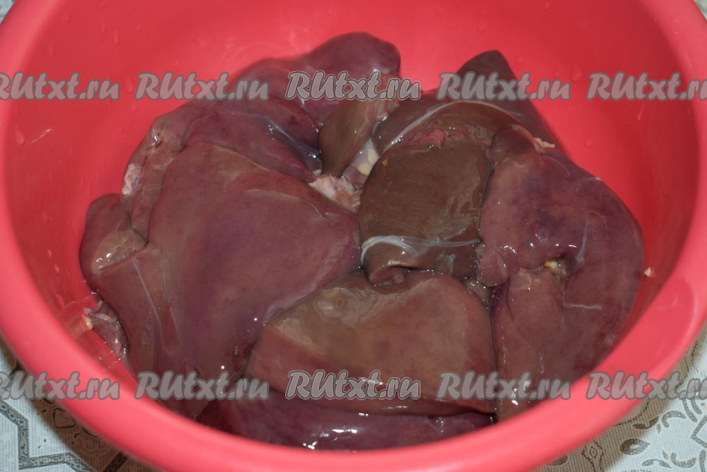 Промоем печень индейки под холодной водой, дадим стечь воде. Индюшиная печень похожа на куриную, но гораздо крупнее её.