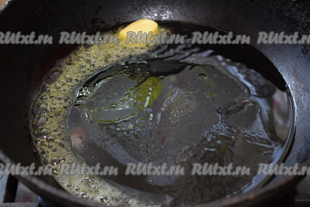В сковороде разогреем растительное масло и добавим к нему сливочное.
