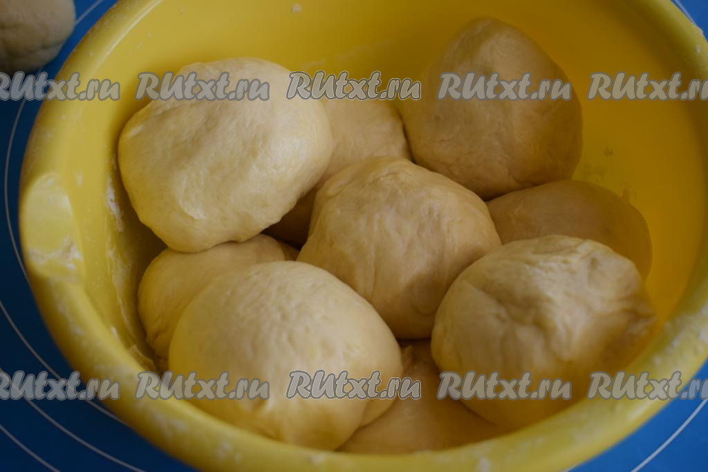 Округляем комочки теста и складываем их в миску. Миску с комочками держим в холодильнике. Достаём по 1 комочку и с ним работаем.