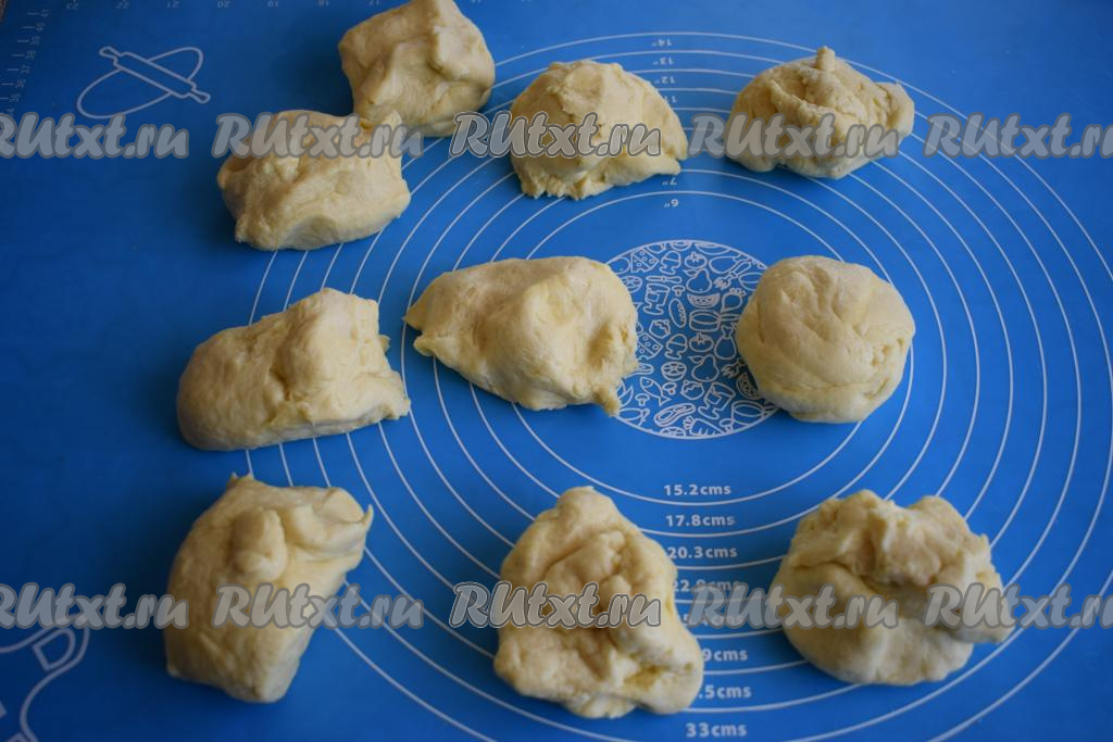 Охлаждённое тесто достаём и делим на, примерно, равные кусочки. У нас должно получиться около 10 кусочков.