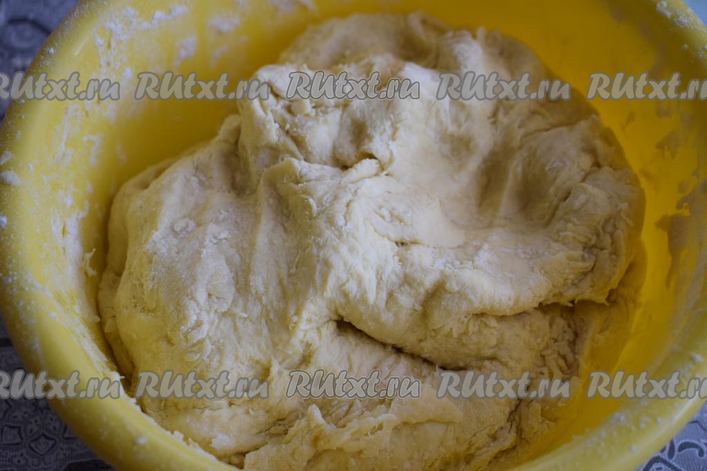 Тесто на коржи должно получиться довольно плотным, крутым, оно совершенно не липнет к рукам и хорошо держит форму.