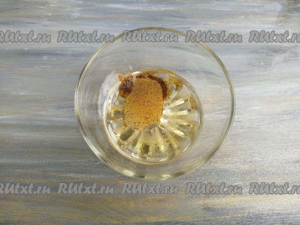 Для заправки смешать яблочный уксус (или лимонный сок), соль, чёрный молотый перец и, примерно, 1,5 столовых ложки растительного масла.