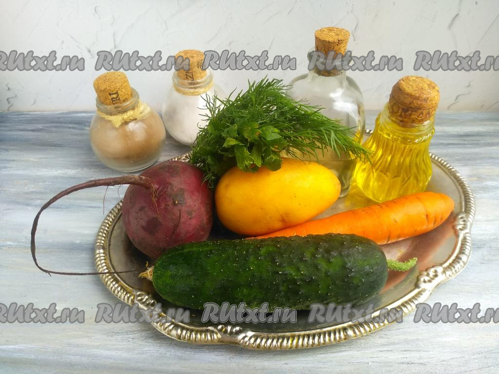 Винегрет - классическое блюдо французской кухни с богатой историей и множеством версий приготовления. Предлагаю вам летний вариант этого популярного салата. Необычный вкус летнему винегрету придаёт свежий огурец (особенно хорош огурчик, только сорванный с грядки). В этом рецепте также желательно использовать молодые свеклу и морковь. Приготовьте летний винегрет и насладитесь его вкусом и ароматом!