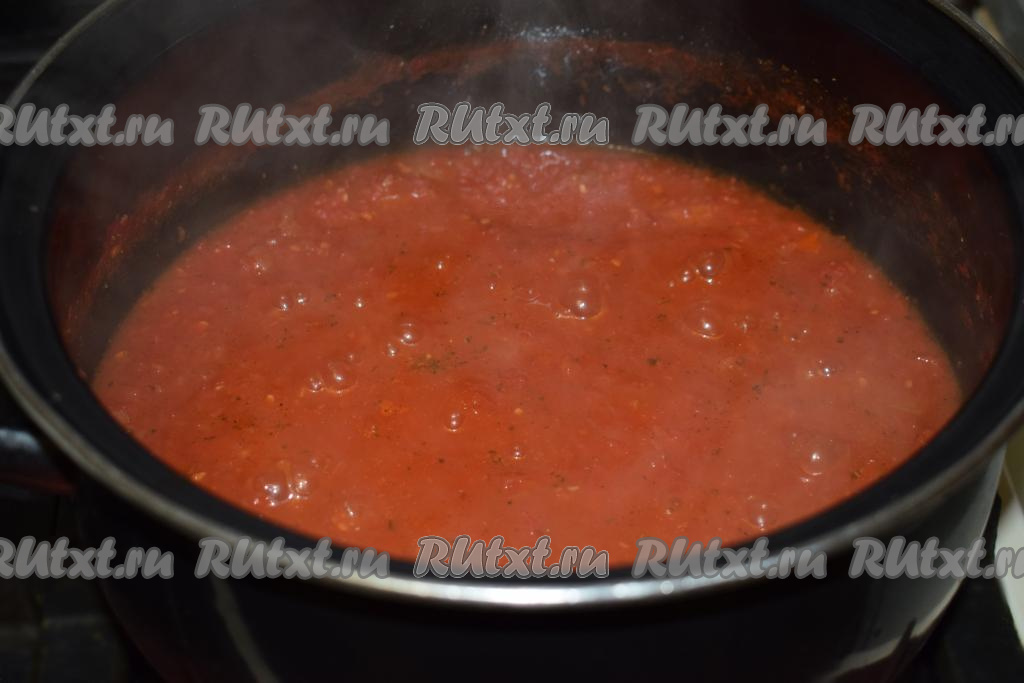 Варим томатный соус ещё 1-2 минуты с момента закипания.
