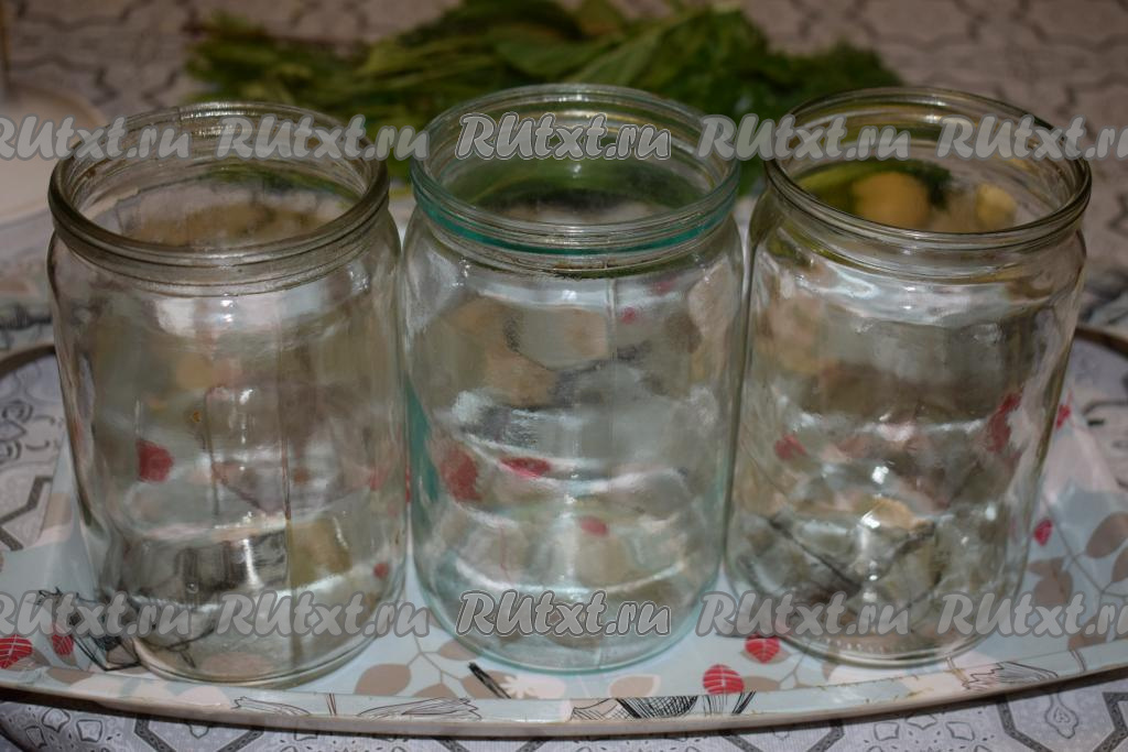 Заранее подготавливаем банки, моем их горячей водой с содой и держим над паром, идущим из кипящего чайника. Крышки заливаем кипятком и оставляем на пару минут.