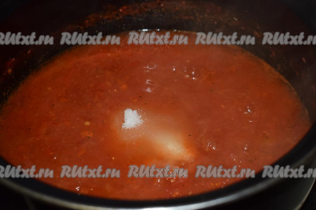 Провариваем массу со специями, солью и сахаром ещё 5 минут.